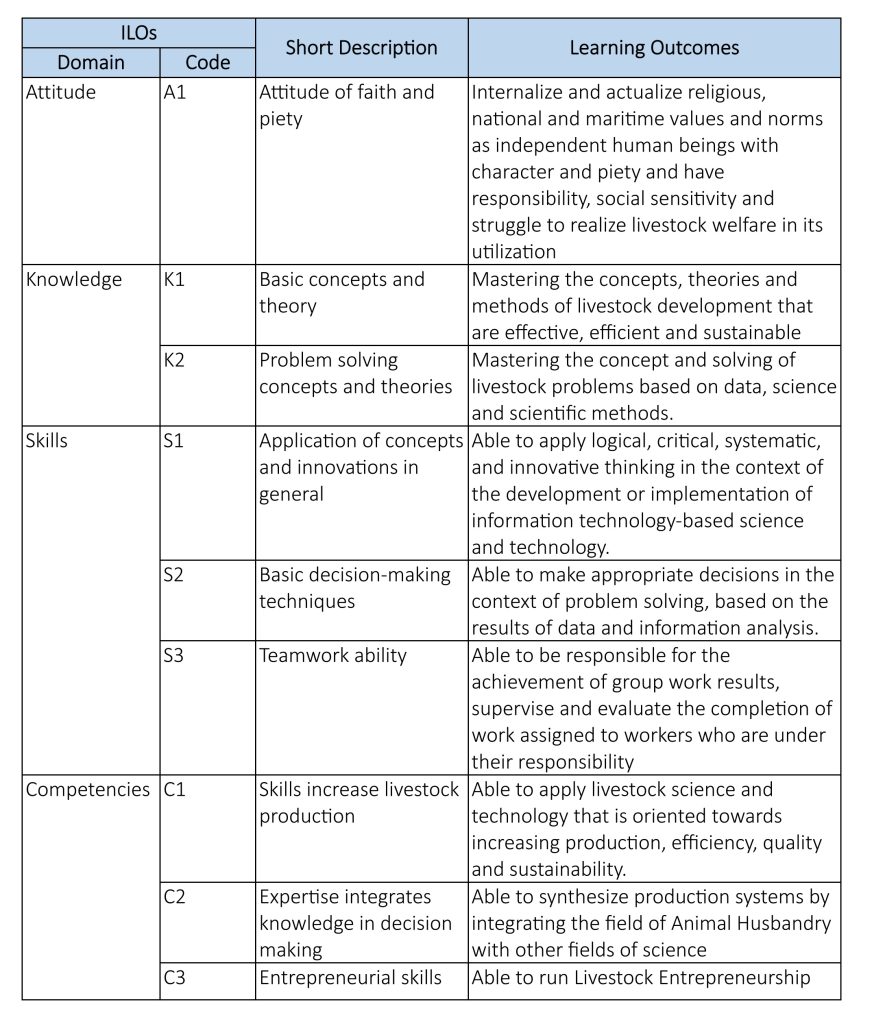 | 5 | Entrepreneur | Graduates who able to apply business in the field of Animal Husbandry as their main business, or business development to support livestock business |