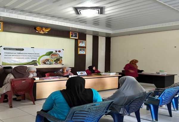 Kegiatan dimulai dengan penyuluhan mengenai pentingnya keamanan pangan dalam proses pengolahan hasil ternak. Para peserta, yang terdiri dari ibu-ibu PKK (Pembinaan Kesejahteraan Keluarga) dan masyarakat sekitar, diberikan pemahaman mengenai integrasi teknologi sederhana untuk memastikan hasil ternak tetap bergizi dan aman dikonsumsi. Kegiatan ini bertujuan untuk meningkatkan kesadaran masyarakat akan penerapan teknologi pengolahan yang efektif, sehingga mendukung ketahanan pangan dan kesejahteraan ekonomi masyarakat.
