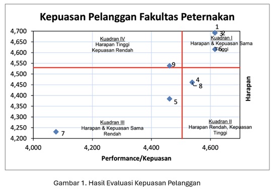 Hasil evaluasi tentang kepuasan pelanggan dari beberapa aspek yang diukur Adalah sangat memuaskan (rerata 84%). Beberapa rencana tindak lanjut diupayakan untuk memperbaiki atau meningkatkan kepuasan mahasiswa. Dari aspek reliabiliti, UPPS Fapet Unhas melakukan upaya peningkatan kapasitas dosen dan pengelola dalam memberikan pelayanan dengan pelatihan. Upaya ini diatur juga dalam Peraturan Rektor Unhas Nomor. 8546/UN4.1/UM.07/2017 tentang Pengangkatan dan Pembinaan Karir Pegawai Unhas pada Pasal 4 ayat (1) bahwa Pegawai Unhas sebagaimana dimaksud dalam Pasal 2 ayat (3) huruf a mempunyai fungsi meningkatkan martabat dan peran dosen sebagai agen pembelajar, pengembang ilmu pengetahuan, teknologi, dan seni, serta pengabdian kepada masyarakat untuk meningkatkan mutu pendidikan Unhas. Ayat (2) Pegawai Unhas sebagaimana dimaksud dalam Pasal 2 ayat (3) huruf b mempunyai fungsi mendukung dan meningkatkan kinerja dalam rangka peningkatan mutu Pendidikan Unhas.
